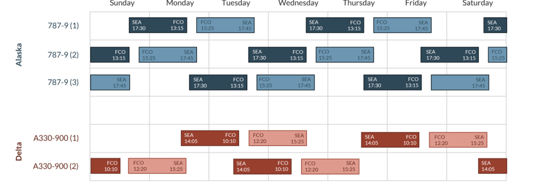 - Boston (3x to 5x weekly, then 6x weekly in summer), Los Angeles (4x to 5x weekly in summer), Orlando (9x to 13x weekly then 2x daily in summer)