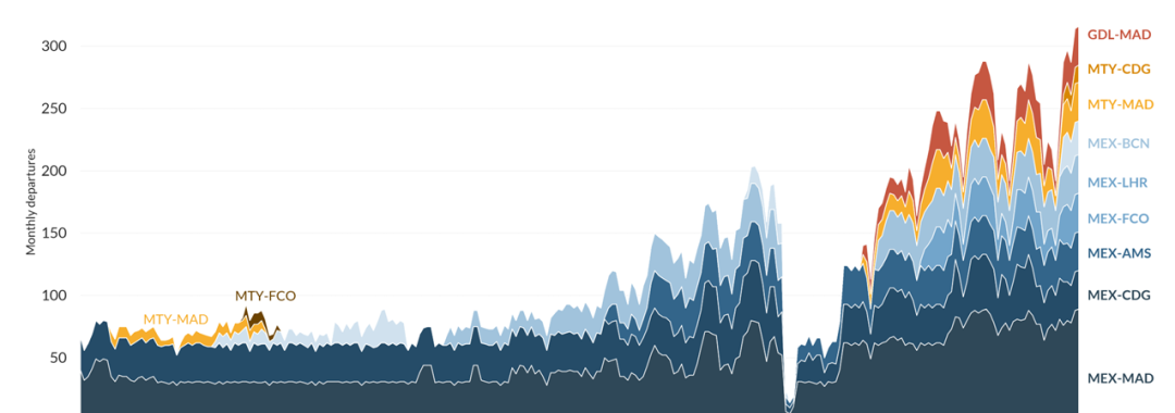 - Mexico City/AIFA: Ciudad Victoria (6x to 12x weekly in spring), San Luis Potosí (6x weekly to 1x daily in spring)